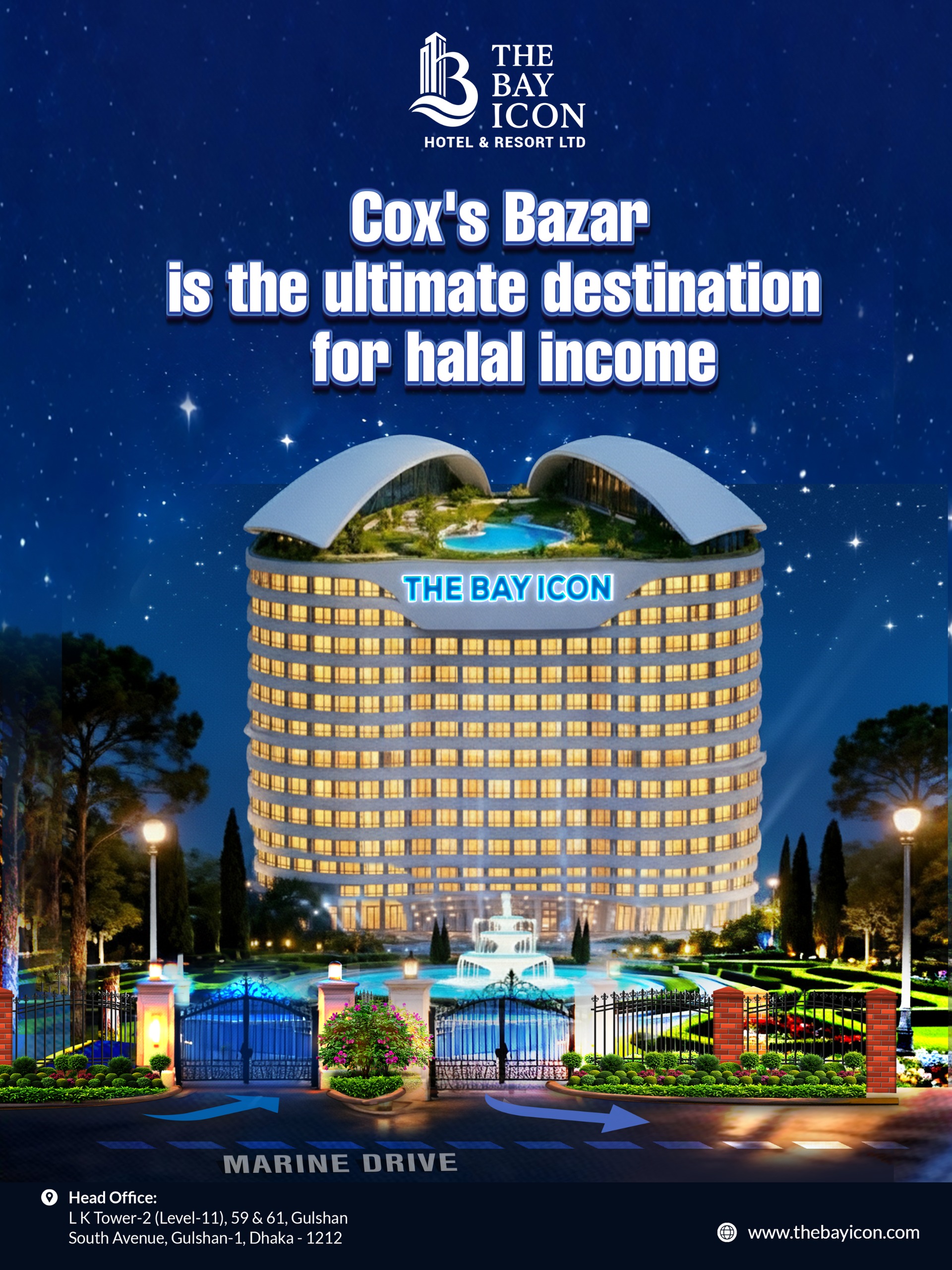 As tourism in Cox’s Bazar rises to global prominence, a rare opportunity emerges for smart investors — Bay Icon International Hotel & Resort, a world-class five-star hospitality project designed to offer legal security, premium returns, and lifelong halal income.
